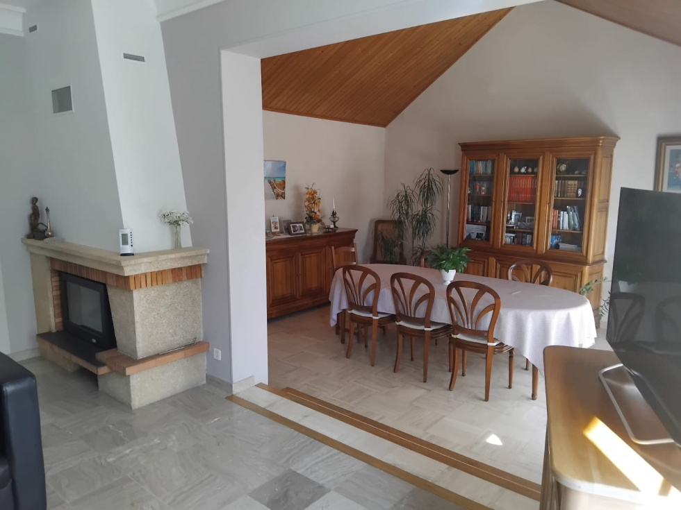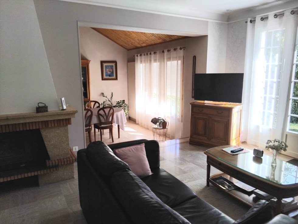 Sous-sol complet d’environ 91 m² avec garage, chaufferie et cellier. Terrasse carrelée donnant sur un beau jardin.