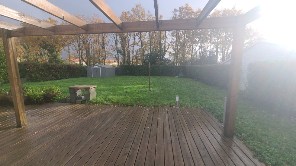 À l’extérieur, vous profiterez d’un terrain clos, arboré et sans vis-à-vis de 637 m², exposé plein sud, avec une grande terrasse en bois parfaite pour vos moments de détente. Garage attenant.