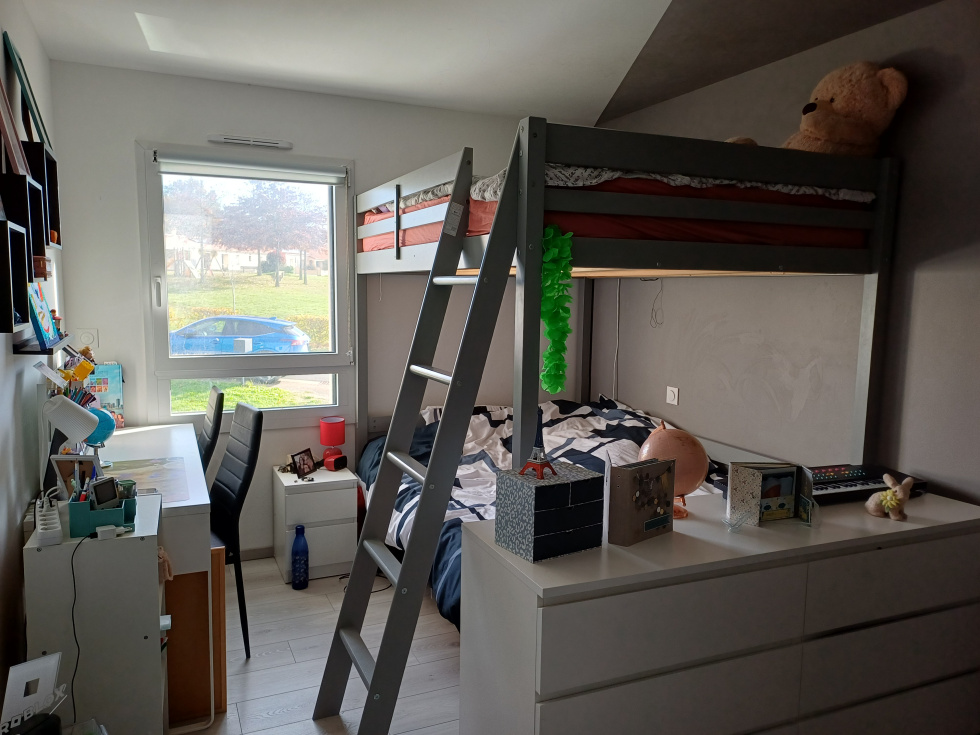 RDC : entrée avec placard, grande pièce de vie lumineuse avec cuisine aménagée et équipée (hotte, plaque, four, micro-ondes, lave-vaisselle, frigo, meubles), arrière-cuisine, une chambre, salle d’eau, WC avec lave-mains. Étage : 6 chambres, salle d’eau, WC avec lave-mains. Garage attenant. Terrain de 792 m² avec une vue dégagée sur la nature. Les plus : maison récente, équipements complets de la cuisine avec une arrière cuisine aménagée (rangement, étagères), TV murale et barre de son incluses, quartier calme.