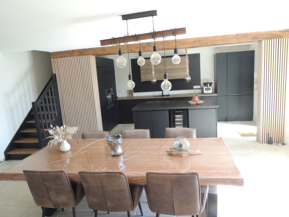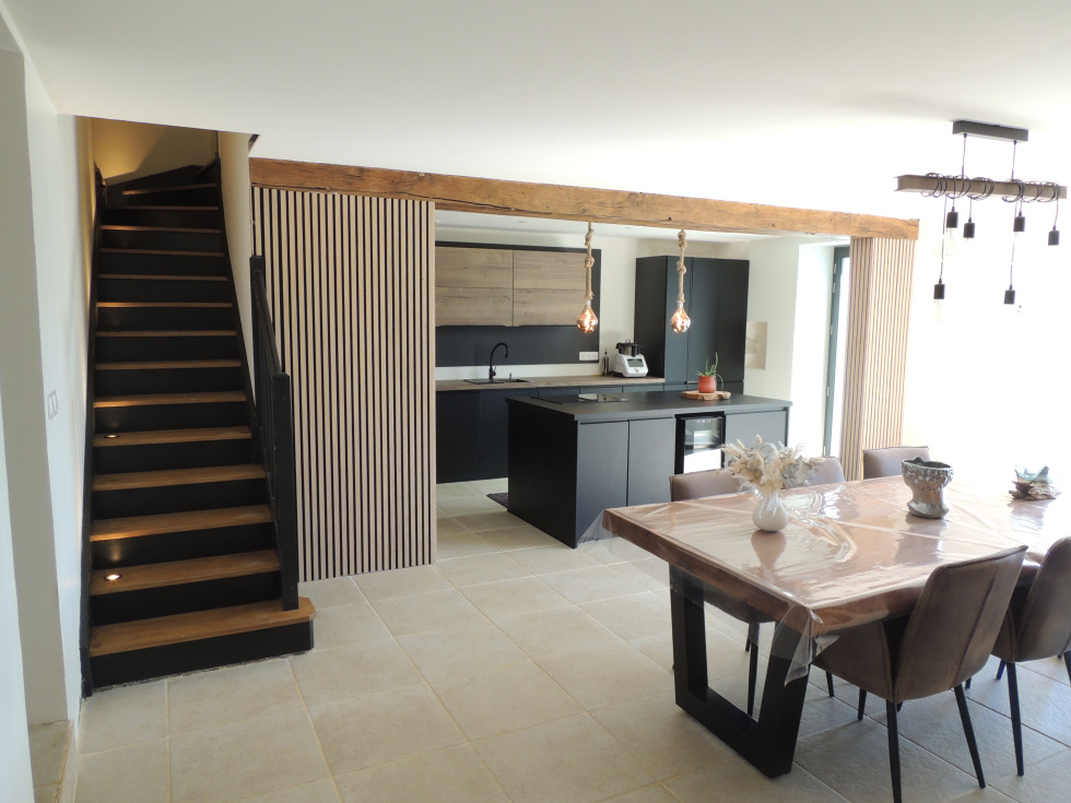 En plein cœur d’un petit village des Essarts-en-Bocage, découvrez cette maison en pierre pleine de charme, actuellement en cours de rénovation, offrant une belle surface de plus de 170 m² habitable sur un terrain de 1 412 m². Dès votre arrivée, vous serez séduit par la spacieuse cuisine, accompagnée d’une arrière-cuisine pratique, parfaite pour le rangement et l’organisation du quotidien. La pièce de vie, composée d’un salon / séjour lumineux, se distingue par un mur en pierres apparentes qui apporte instantanément chaleur et authenticité à l’ensemble. On imagine aisément cet espace convivial, autour d’un poêle à bois. Le rez-de-chaussée comprend une buanderie ainsi qu'un bureau, idéal pour le télétravail ou une chambre d’enfant, ainsi qu’une salle de bain et un WC indépendant. À l’étage, le palier dessert deux chambres. Un grenier offre la possibilité d’aménager un nouvel espace selon vos envies chambre supplémentaire, salle de jeux ou suite parentale. Attenant à la maison, un garage permet un accès direct. À proximité, deux garages non attenants, un hangar et un box viennent compléter l’ensemble, offrant de multiples possibilités de rangement ou d’aménagements pour un artisan ou un passionné de bricolage. Le tout est implanté sur une parcelle de 1 412 m², offrant un cadre agréable et calme, avec un beau potentiel extérieur. Cette maison allie le charme de la pierre, des volumes généreux et le potentiel d’un projet à personnaliser, dans un environnement paisible, à proximité des commodités des Essarts-en-Bocage. Prix et frais associés :Prix net vendeur : 235 000 €Honoraires d’agence : 5.50 % du prix net vendeur, soit 12 900€Prix total FAI (frais d’agence inclus) : 247 900 €À noter : Les frais de notaire sont calculés uniquement sur le prix net vendeur. Informations réglementaires :Estimation des coûts annuels d’énergie : entre 1700 € et 2350 €Consommation conventionnelle d'énergie : 237 kWh ep/m².an (Classe D)Émissions de CO2 : 7 kg eqCO2/m².an (Classe B ) Contactez-nous pour plus d’informations ou pour organiser une visite ! 06.56.83.18.54 Hucteau Eddy Agent commercial immatriculée au RCS, N° 793666140 RCS La Roche sur Yon.